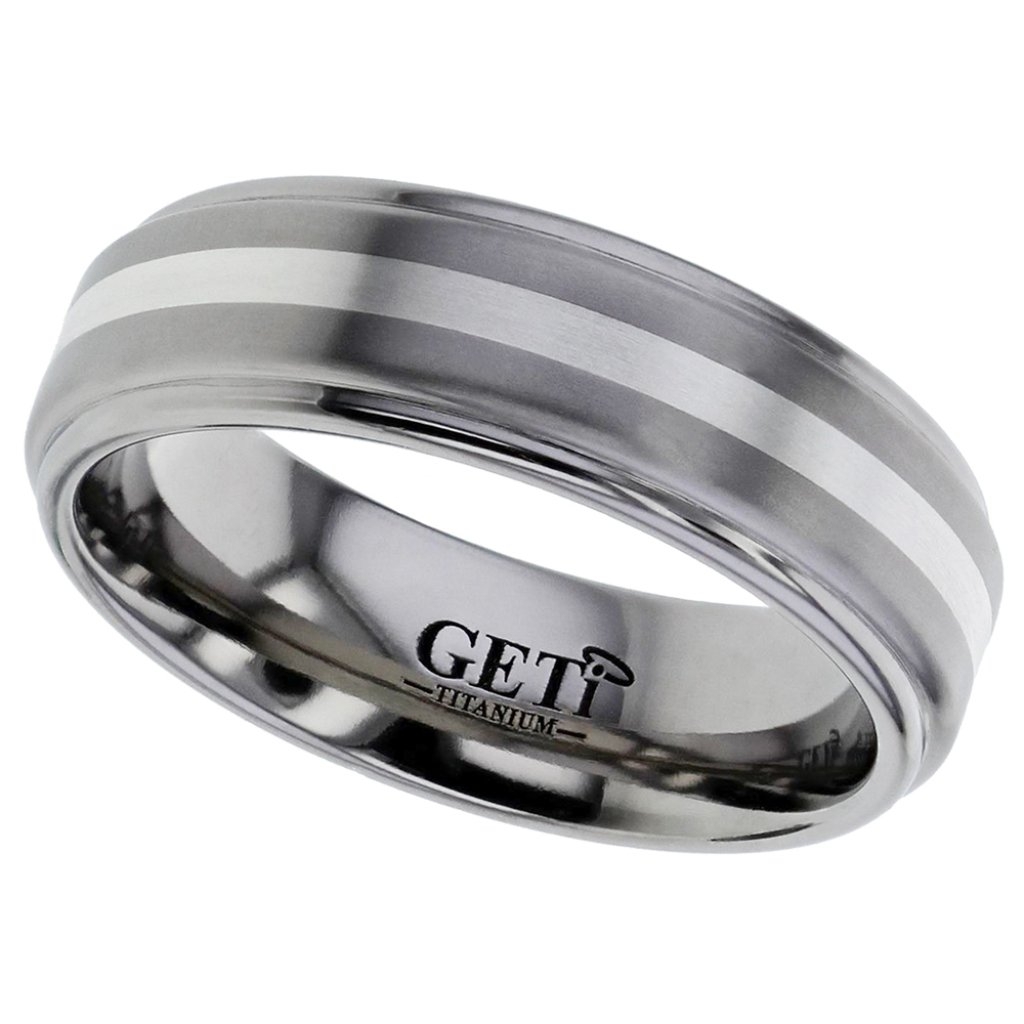 Flat, shouldercut profile Titanium ring with a central 1.5mm precious white metal inlay.