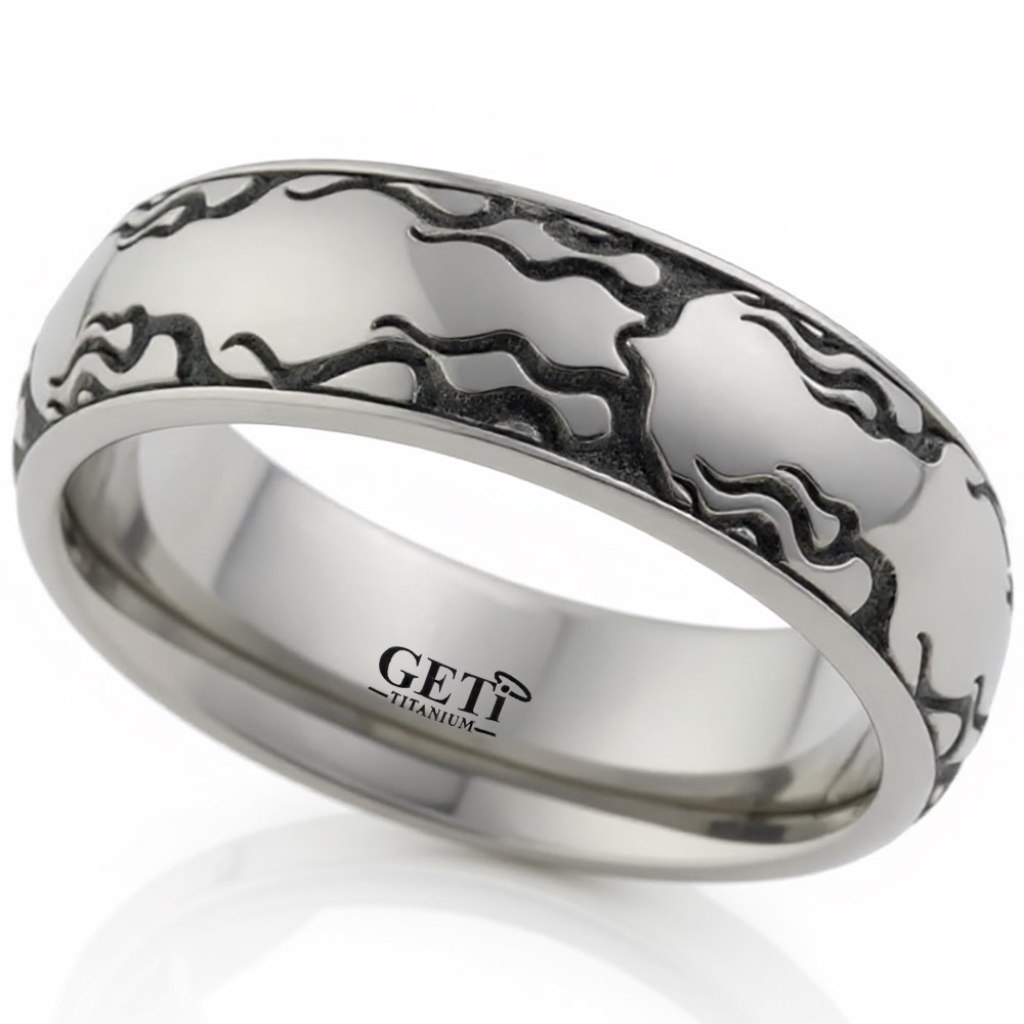 Lasered flame design Titanium ring - dome profile, inside comfort fit.