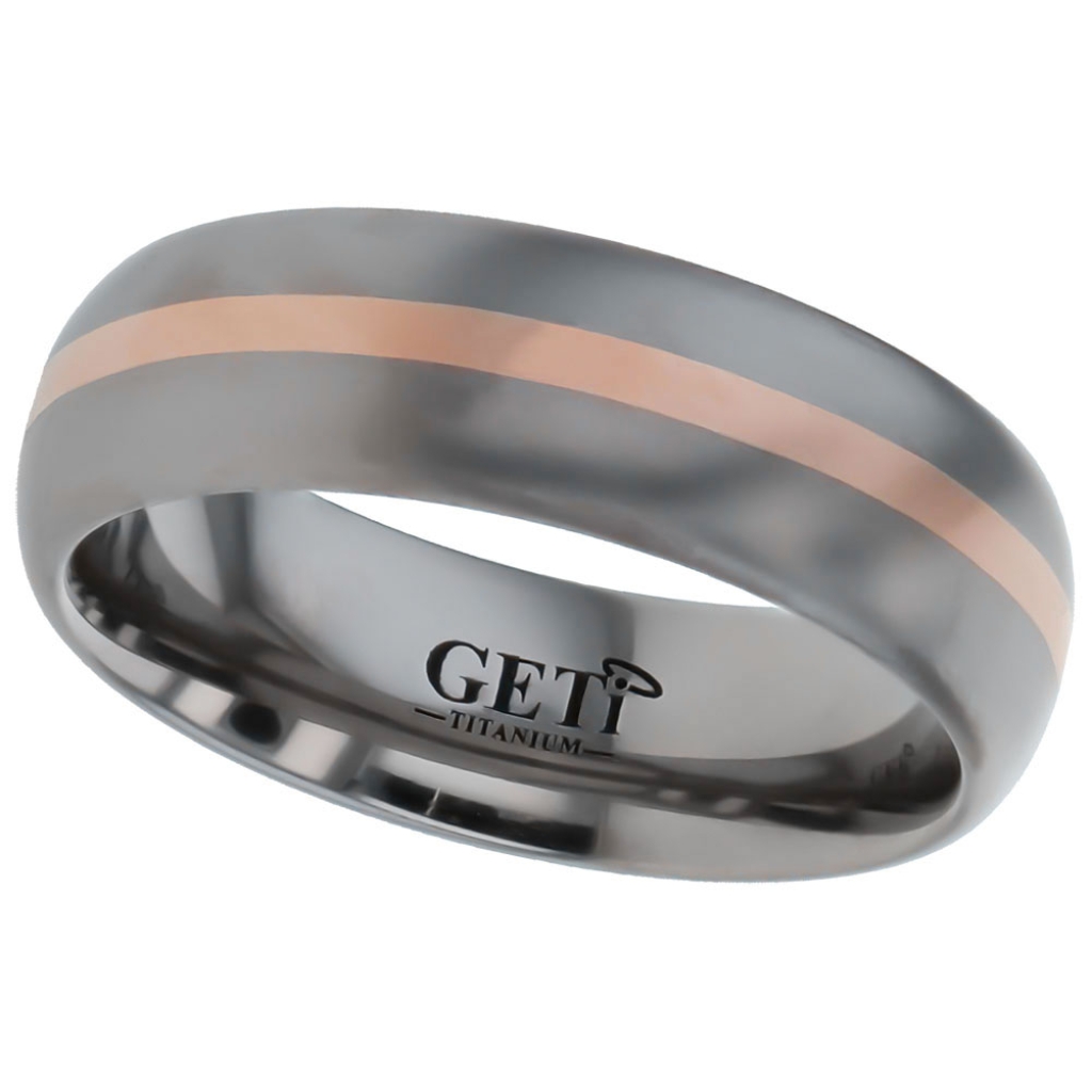 Dome profile Titanium ring with 1mm - 1.5mm wide precious red metal inlay.