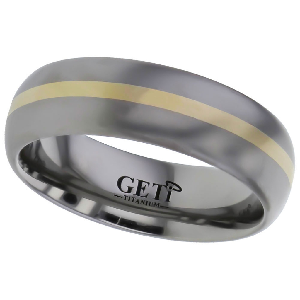 Dome profile Titanium ring with 1mm - 1.5mm wide precious yellow metal inlay.