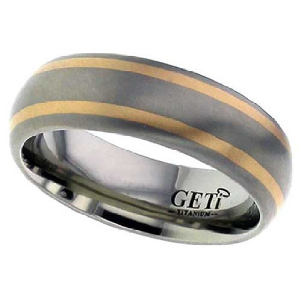 Dome Ti ring with twin 1mm precious red metal inlays.