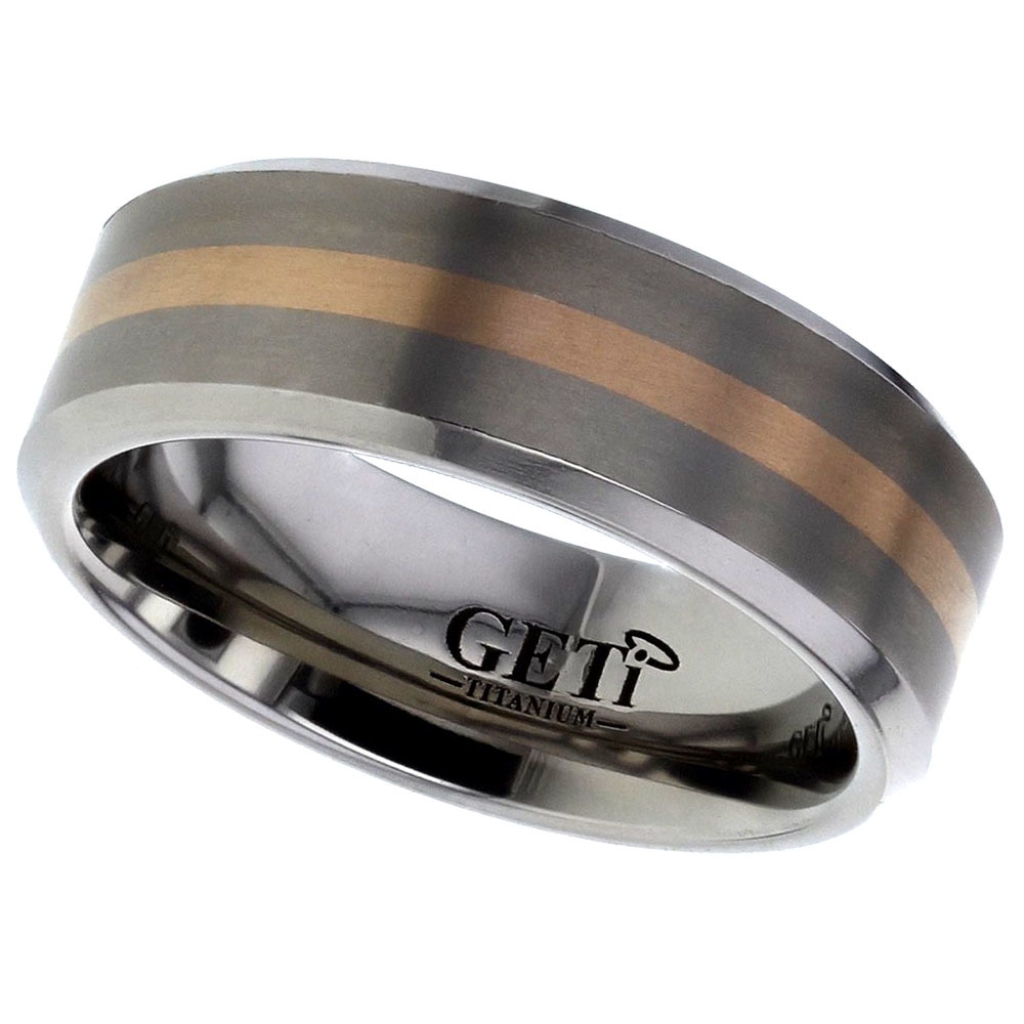 Flat, chamfered profile Titanium ring with 1.5mm wide precious red metal inlay