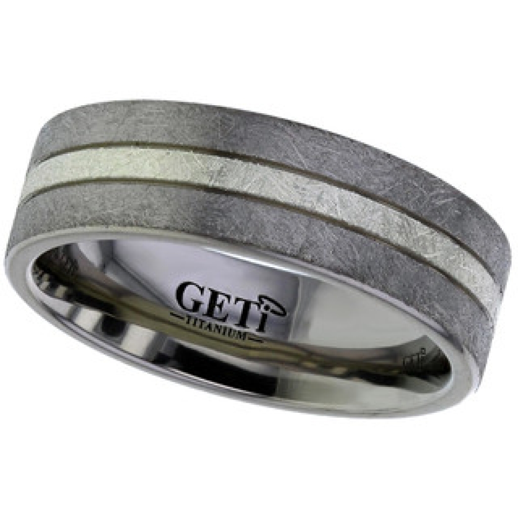Flat profile Titanium ring with 1.5mm wide precious white metal grooved inlay.