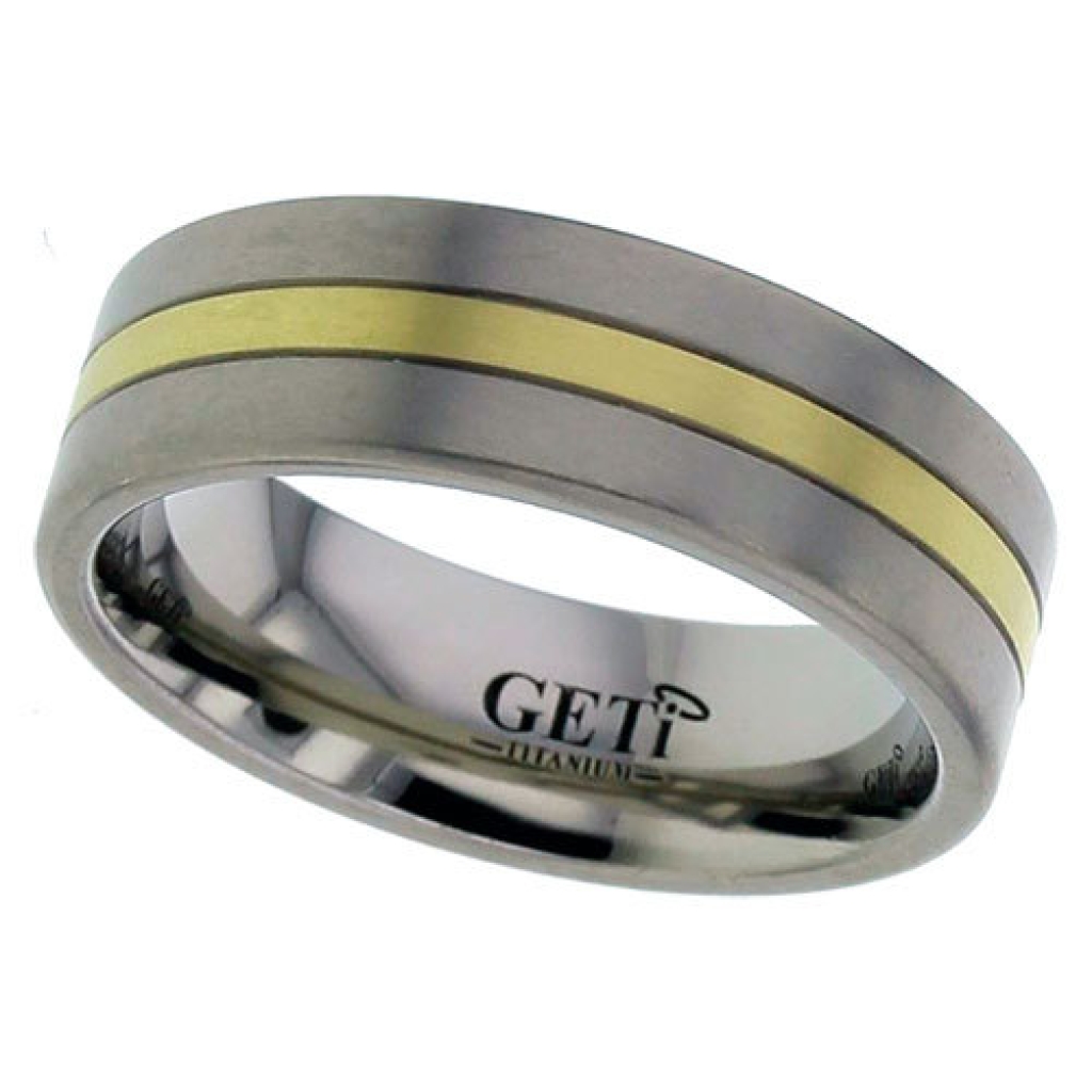 Flat profile Titanium ring with 1.5mm wide precious yellow metal inlay - grooved.
