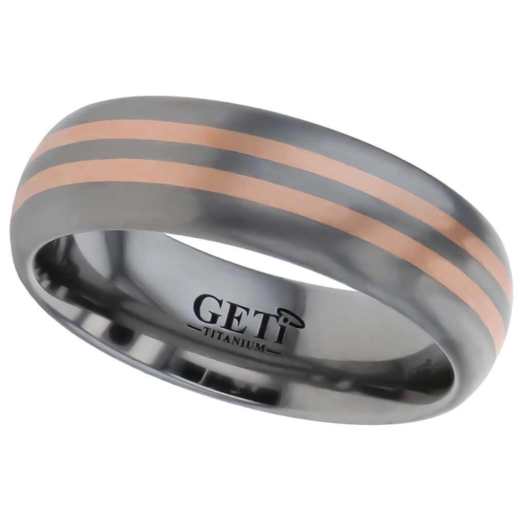 Dome Ti ring with twin 1mm precious red metal inlays.
