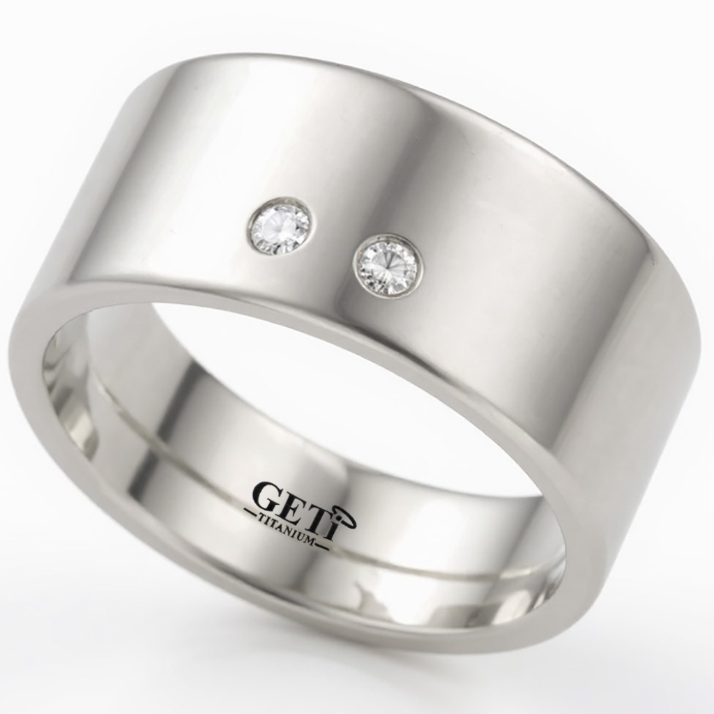 Flat profile Titanium ring set with two 3pnt brilliant cut diamonds (SI-G/H). Please bear in mind that the offcentre effect of the diamonds will not be as noticable on the narrower versions.
