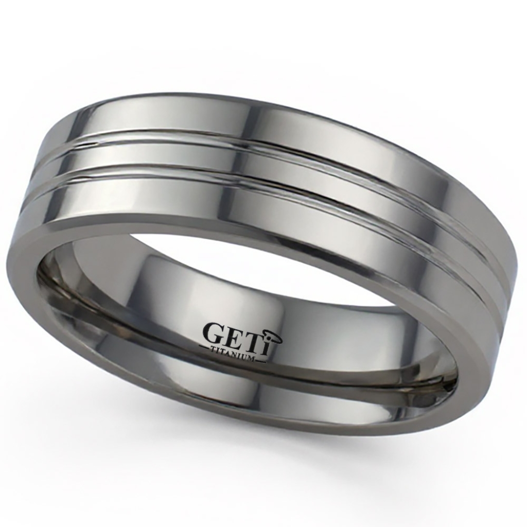 Flat profile Titanium ring with twin grooves.