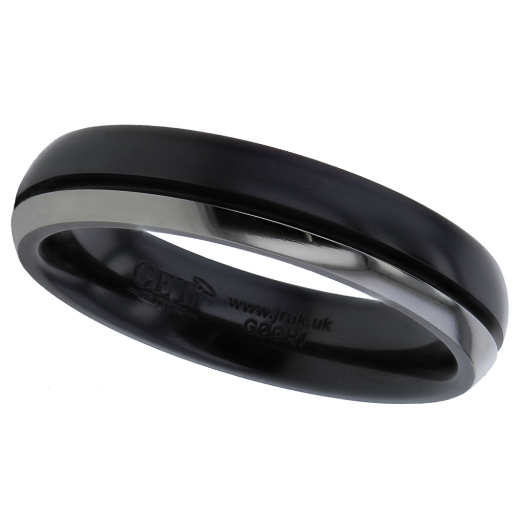 Twin colour, dome Zirconium ring. 2/3's black - 1/3 natural edge. (Part of the Continuum Collection and includes Jewellery Reunited serial number)