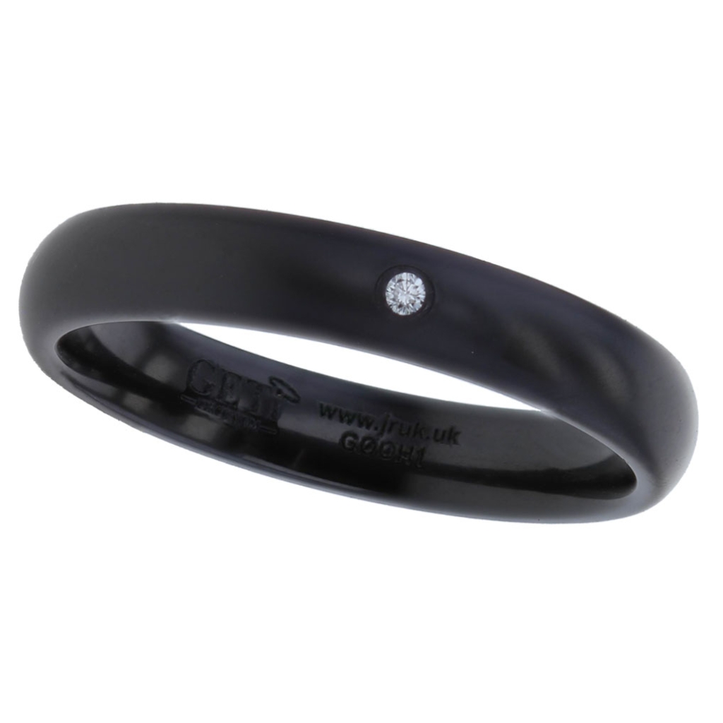 Dome profile 3pnt (2mm) Diamond set Black Zirconium ring (Part of the Continuum Collection and includes Jewellery Reunited serial number)