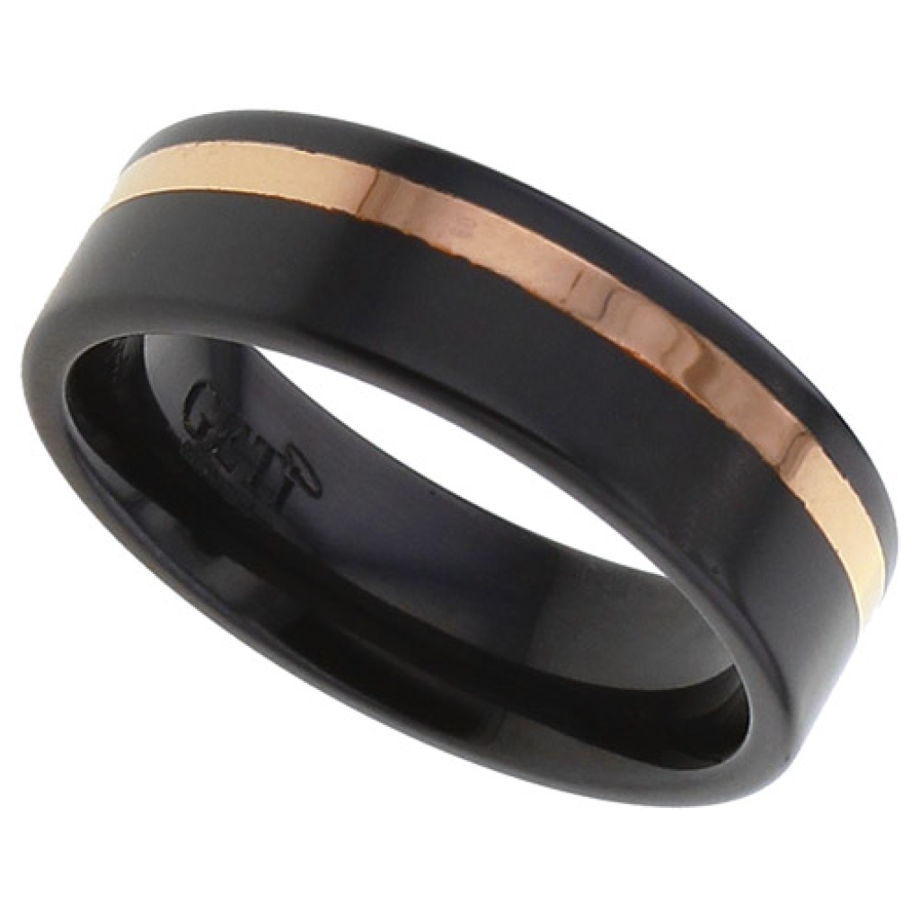 Flat profile Black Zirconium ring with a 1.5mm wide off-centre precious red metal inlay. *Please note that our Express Manufacture Service does not apply to this product*