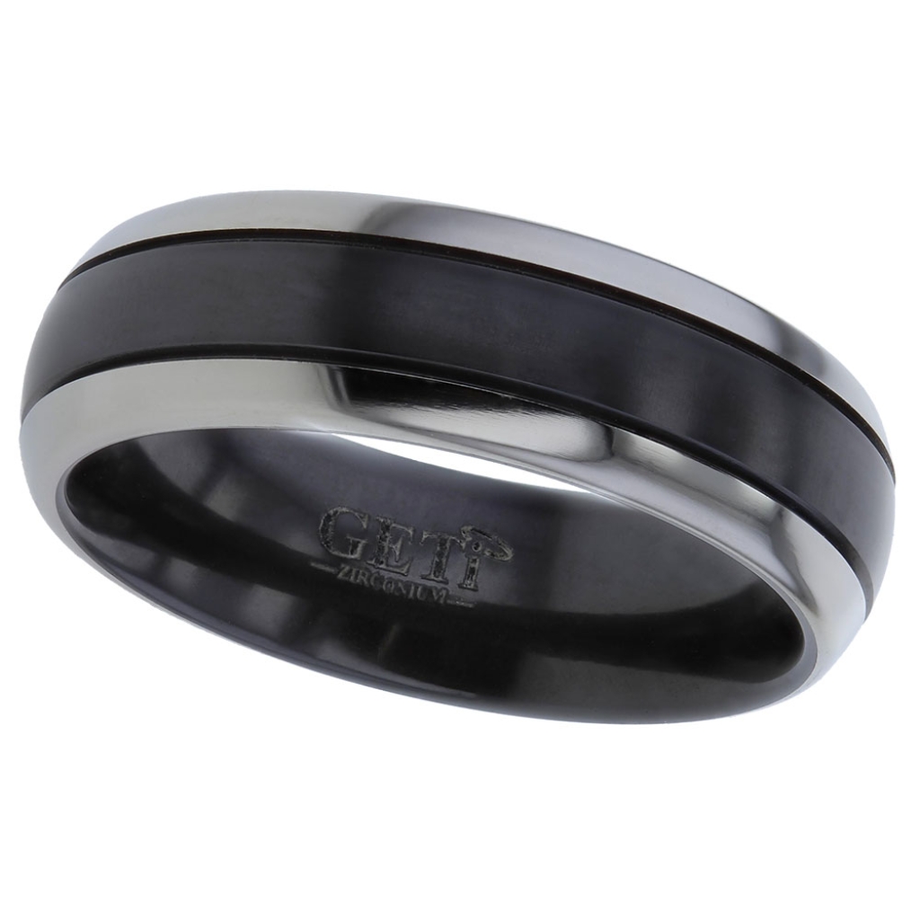 Twin colour, dome Zirconium ring. Natural edges with a black centre.